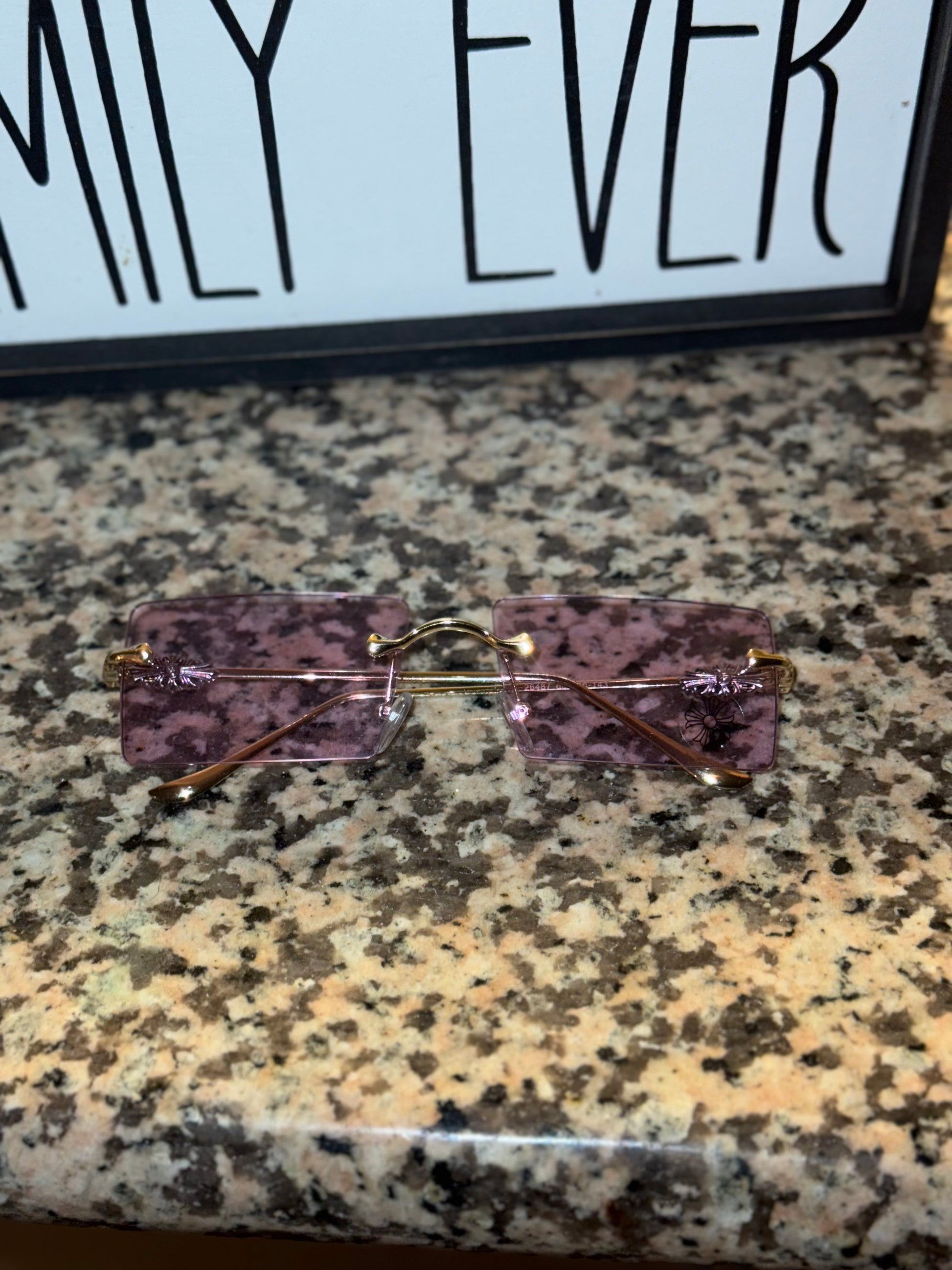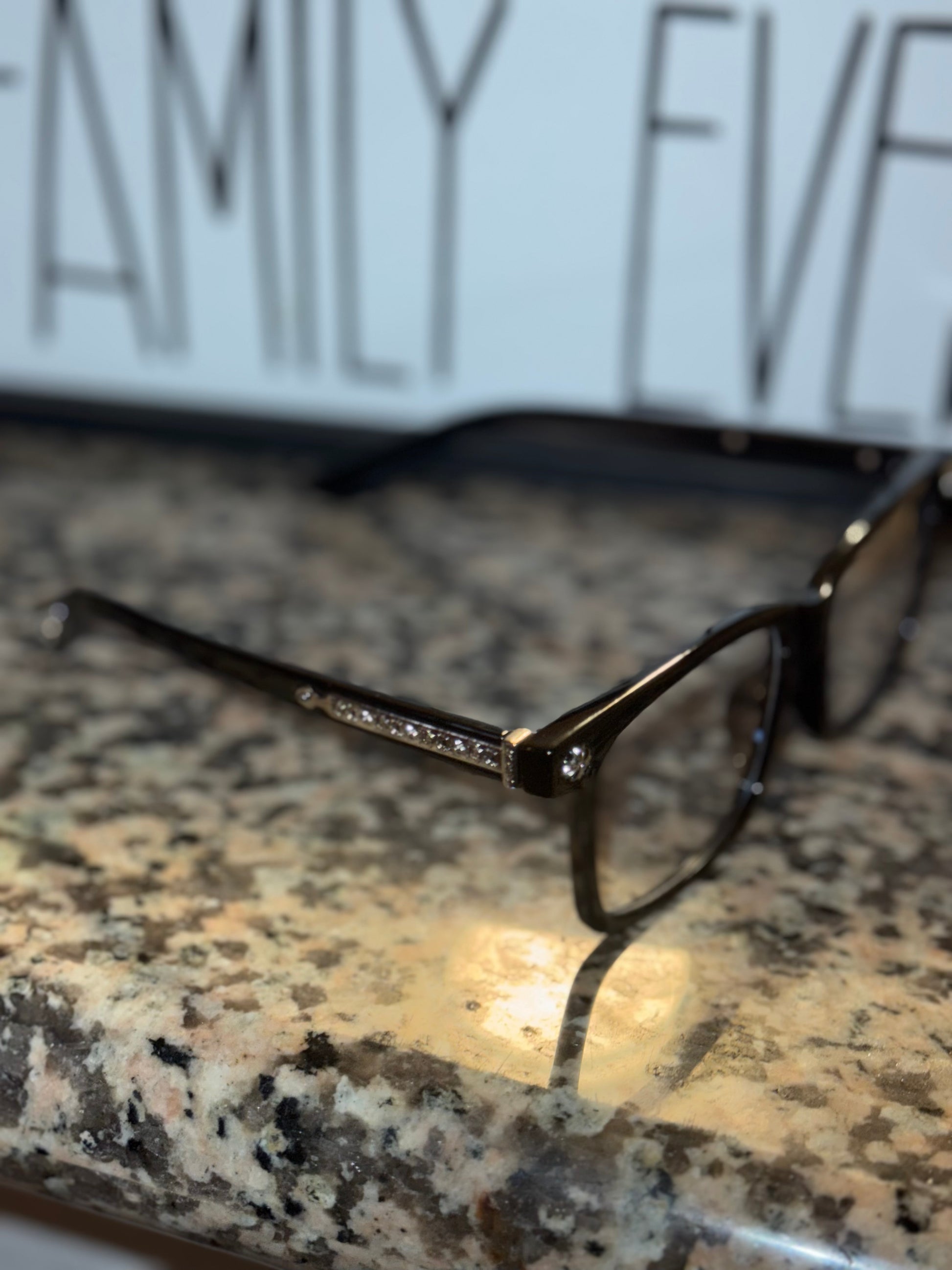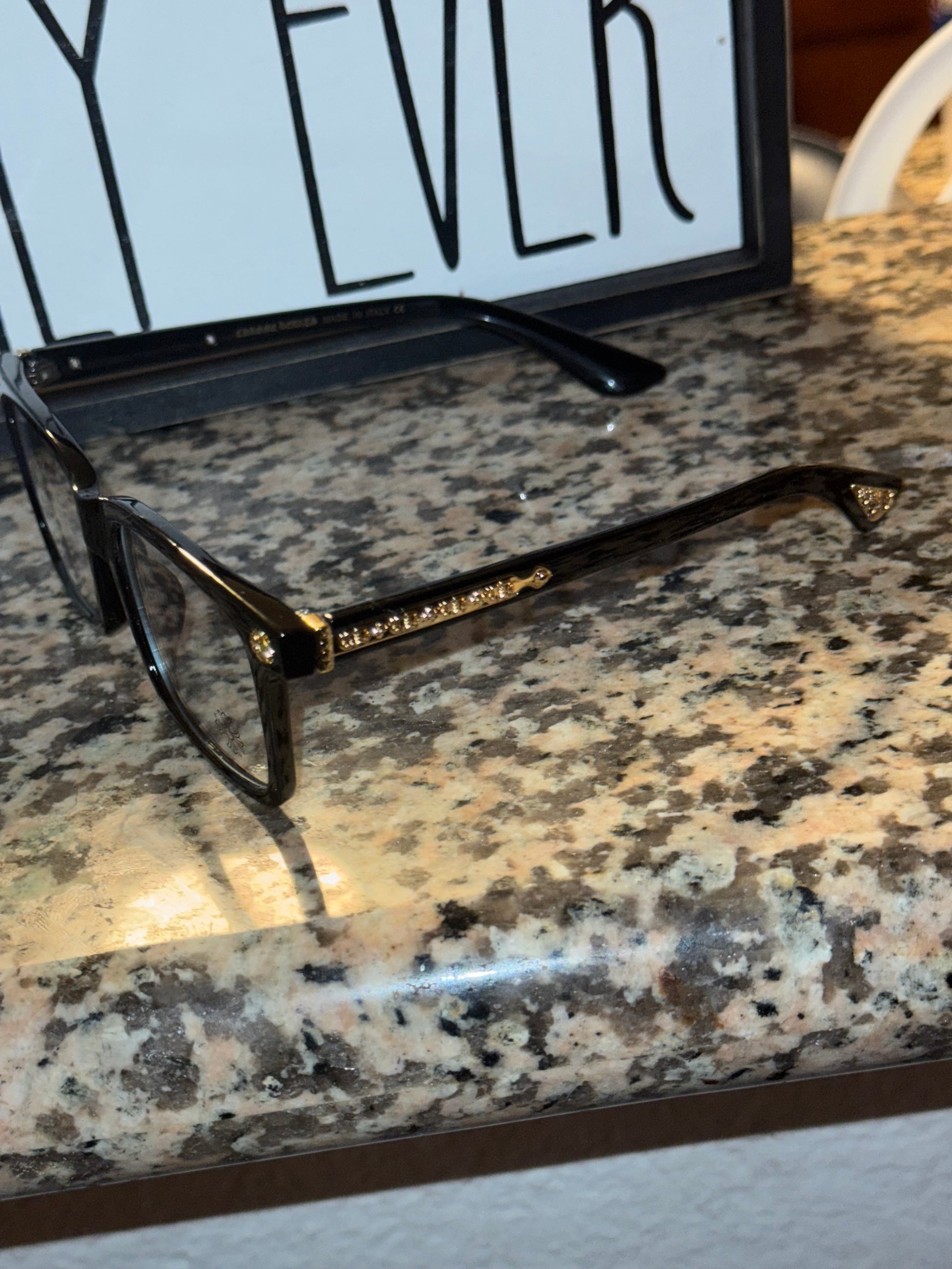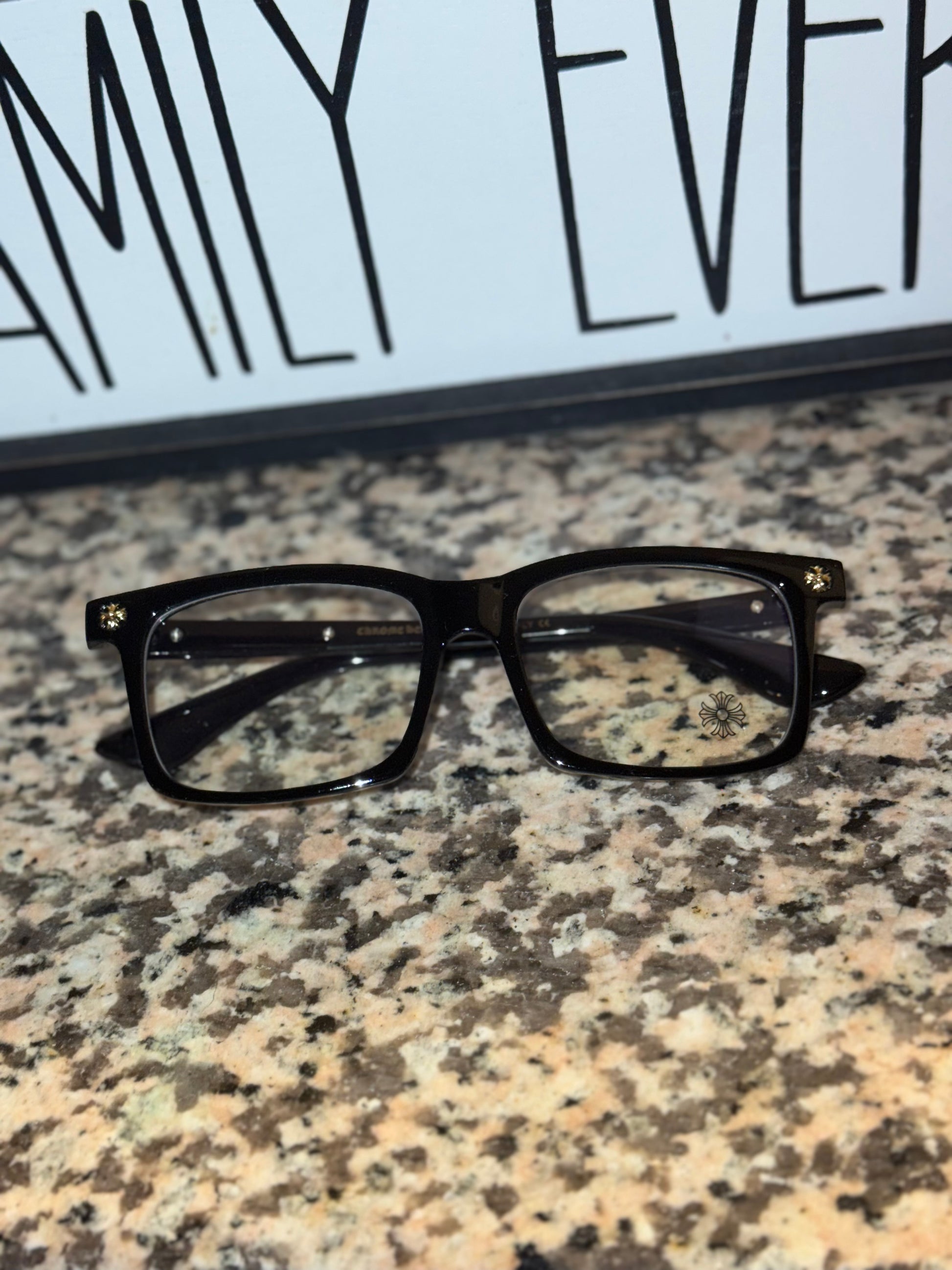 A pair of stylish, high-quality glasses that combine a classic design with modern flair. They feature a sleek, rectangular frame with subtle metallic detailing on the temples, adding a touch of edgy sophistication. The durable construction is built for long-lasting wear, making these glasses perfect for a statement look, whether you're at the office or out on the town.